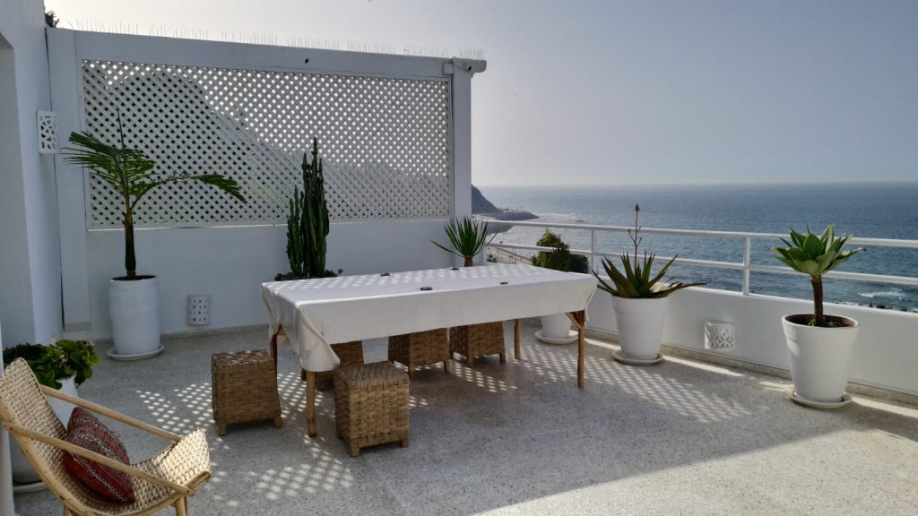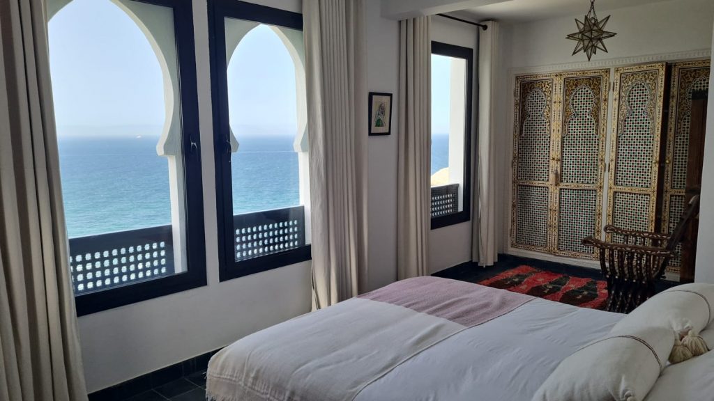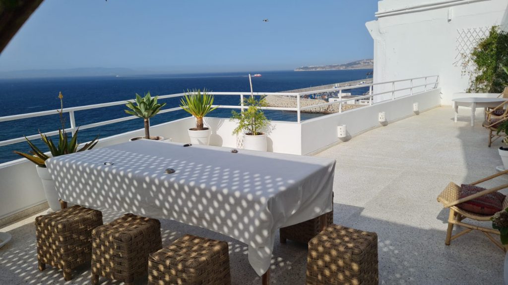 Une propriété moderne offrant une vue imprenable sur la côte méditerranéenne et la baie de Tanger. Située dans un lieu privilégié de la côte Tangéroise, Marchan, un lieu de régénération du corps et de l’esprit, loin des regards, des foules, au milieu de la brise douce, du son des oiseaux et du léger bruit des vagues qui s’entrechoquent. Promenez-vous à travers les ruelles de Marchan et de la Kasbah à proximité et de la Médina, un dédale quasiment infini de ruelles où ce sont noués les histoires de Tanger sur plus de 1000 ans, ou profitez d’un apéritif ou d’un verre de thé sur la terrasse tout en regardant l’un des couchers de soleil spectaculaires que reçoit ce somptueux lieux face à la mer.